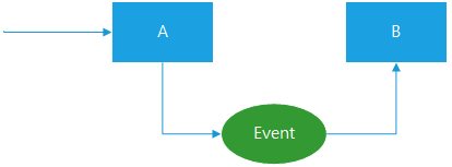 目前我们绝大部分人的思维习惯是顺序式的,体现在代码上也就是A做完它做的事情然后B继续处理,当然这么做没有任何问题,这也是最为简单直观的一种编程方式。我们再来看一下通过Event来解耦的链路。
