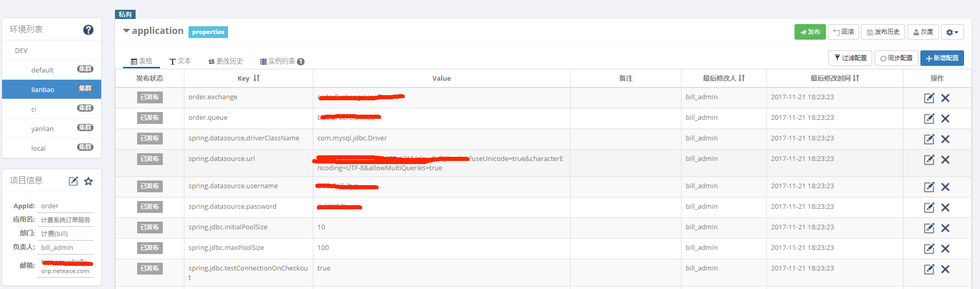 计费项目面临的诸多问题之一就有配置文件的管理,因为业务流程的原因,计费系统有着大量的各种各样的配置。以前我们把配置文件放到工程里面,通过自动化部署平台来指定使用不同的配置文件。这样做的一个显著问题就是代码和配置耦合起来了,每次修改什么配置都得提交代码,而我们提交又有着一套严格地流程,导致整体效率不高。另外一个问题就是可视化的问题。往往QA在线下环境测试都是通过的,而上线以后出了问题,基本上都是配置导致的问题。针对这几个的问题,我们决定使用Apollo来管理我们的配置,通过整合Apollo,我们的两个项目(订单和计费)都做到了工程零配置,所有的配置都放到Apollo上进行管理,好处良多。