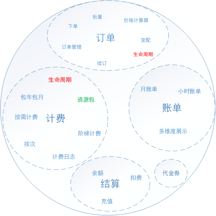 在我们开始优化架构之前,我们重新梳理了计费系统完整的业务,得到了如下图所示的业务领域: